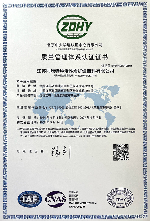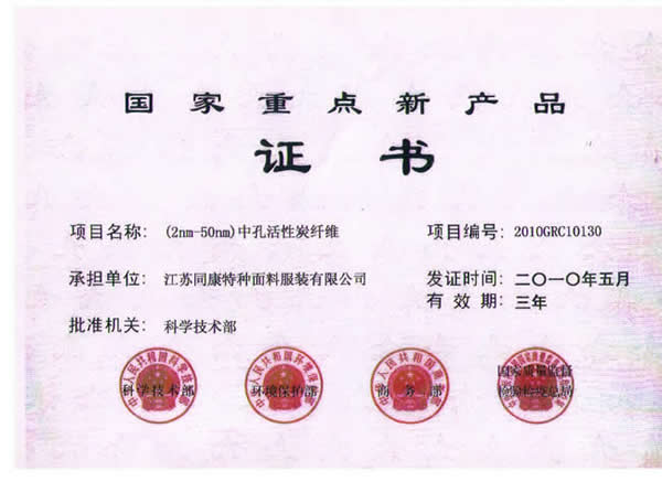 江蘇同康特種活性炭纖維面料有限公司座落在江海明珠的窗口,民族工業的發祥地,省級經濟開發區——南通港閘經濟開發區,沈海高速、寧通高速貫穿而過交通十分便捷,公司占地面積4.5萬平方米,建筑面積2.8萬平方米,固定資產8000多萬元。同康公司是專業生產活性炭纖維的企業,公司擁有國內特闊幅大型連續式活性炭纖維生產線,可生產1.5米幅寬的活性炭纖維系列產品。有寬幅拉幅定型機、多功能層壓織物復合機、連續式活性炭纖維靜電植絨生產線及多功能復合材料生產線等設備...