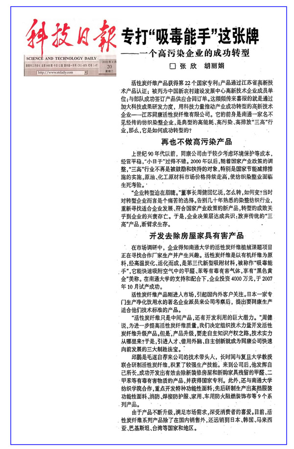 科技日報(bào)——專打“吸毒能手”這張牌——一個(gè)高污染企業(yè)的成功轉(zhuǎn)型